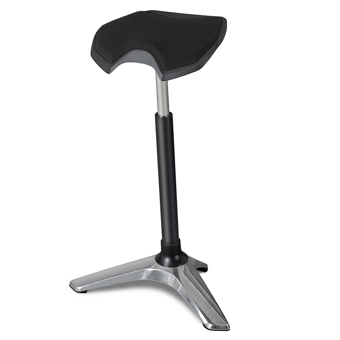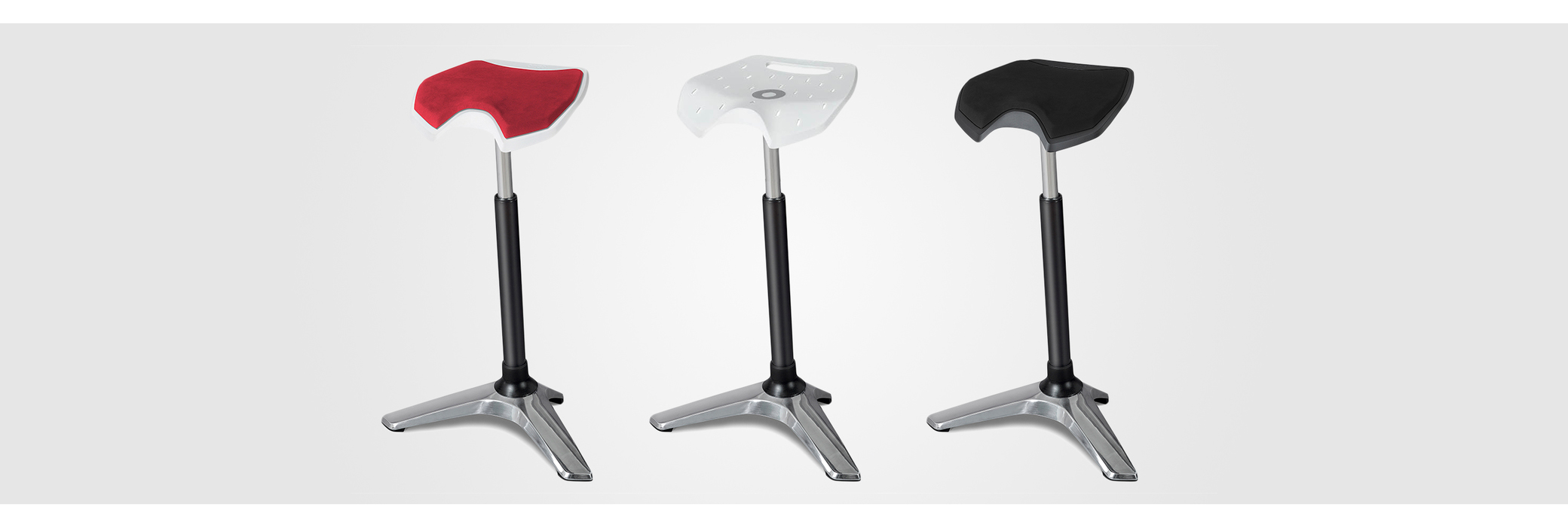 Der Ongo Stand ist eine Stehhilfe für alle stehenden Tätigkeiten. Ob Sie Zuhause bügeln, an Ihrem Steh-Sitzschreibtisch arbeiten, im Werk montieren oder am Schalter stehen. Der Stand stützt Sie in allen Situation gleich gut und bietet einen hohen Komfort. Alle Bewegungen werden dabei über ein Gelenk im Fußkreuz geführt. Dies gewährleistet eine vergleichsfreie hohe Dynamik. Der ergonomisch geformte Sattelsitz hält einen dabei gut im Polster. Dieses ist abnehmbar und leicht zu reinigen. Der attraktive Fuß ist als Aluminium und glänzend poliert. Der Ongo Stand macht als ergonomische Stehhilfe immer eine gute Figur!