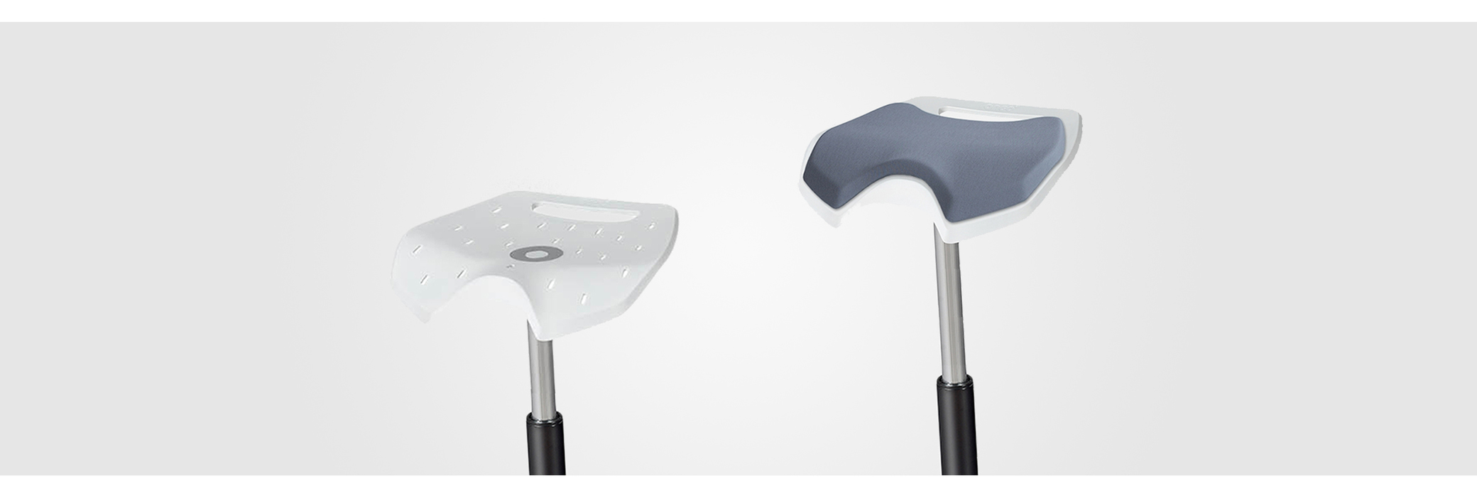 Besonders hervorzuheben am Ongo Stand sind sowohl der Sitz als auch die elastische Lagerung des Standrohres im 3-armigen Fuß. Die Form des Sitzes wurde den ergonomischen Anforderungen entsprechend so gewählt, dass der Benutzer sich sowohl bequem darauf setzen als sich auch, wie bei reinen Stehhilfen, nur anlehnen kann. Um die Position und Neigung des Sitzes jeweils optimal den Arbeitsbedingungen anpassen zu können, ist das Standrohr nicht starr, sondern elastisch im Fuß gelagert. Diese elastische Lagerung begünstigt gleichzeitig einen großen Aktionsradius und insgesamt aktives und damit gesundes Arbeiten.
