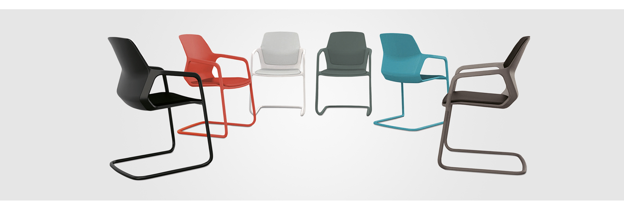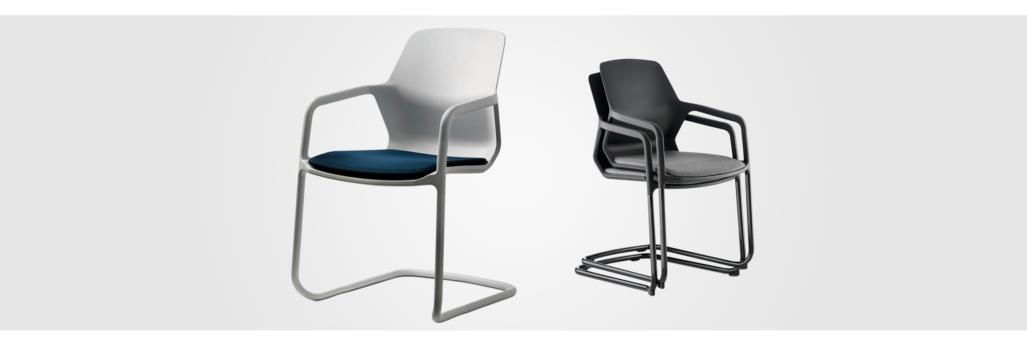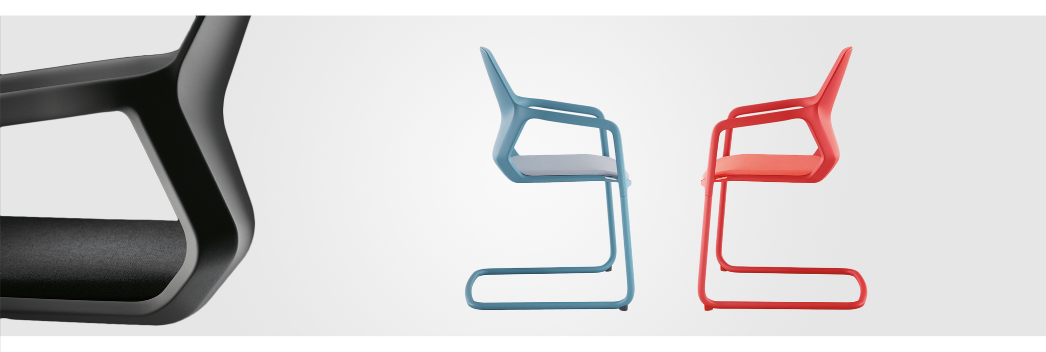 Der neue Freischwinger Metrik von Wilkhahn besticht durch seine skulpturhafte Form, deren Konturen an modernes Automobildesign erinnern: Polygonale Flächen und gerundete Kanten umschreiben einen markanten Körper, dessen Gesamtvolumen durch die formschlüssige Zusammensetzung des Stahlrohrgestells und des aufgesteckten Sitzelements definiert wird. Bei einheitlicher Farbgebung von Sitz und Rohrgestell wird die integrierte Gestaltung zusätzlich betont und lässt den gesamten Stuhl wie aus einem Stück gemacht erscheinen. Die körpergerechte Ausbildung der Innenseite mit dem eingearbeiteten Sitzpolster bietet hohen Komfort, der mit zusätzlichem Rückenpolster erhöht werden kann. Ob als komfortabler Gegenüberstuhl am Schreibtisch, als farbenfroher Mehrzweckstuhl in einer CoWorking-Umgebung, als stapelbare Seminarbestuhlung (mit verchromtem Gestell) oder als pflegeleichter Blickfang in der Caféteria. Es gibt unzählige Einsatzbereiche.