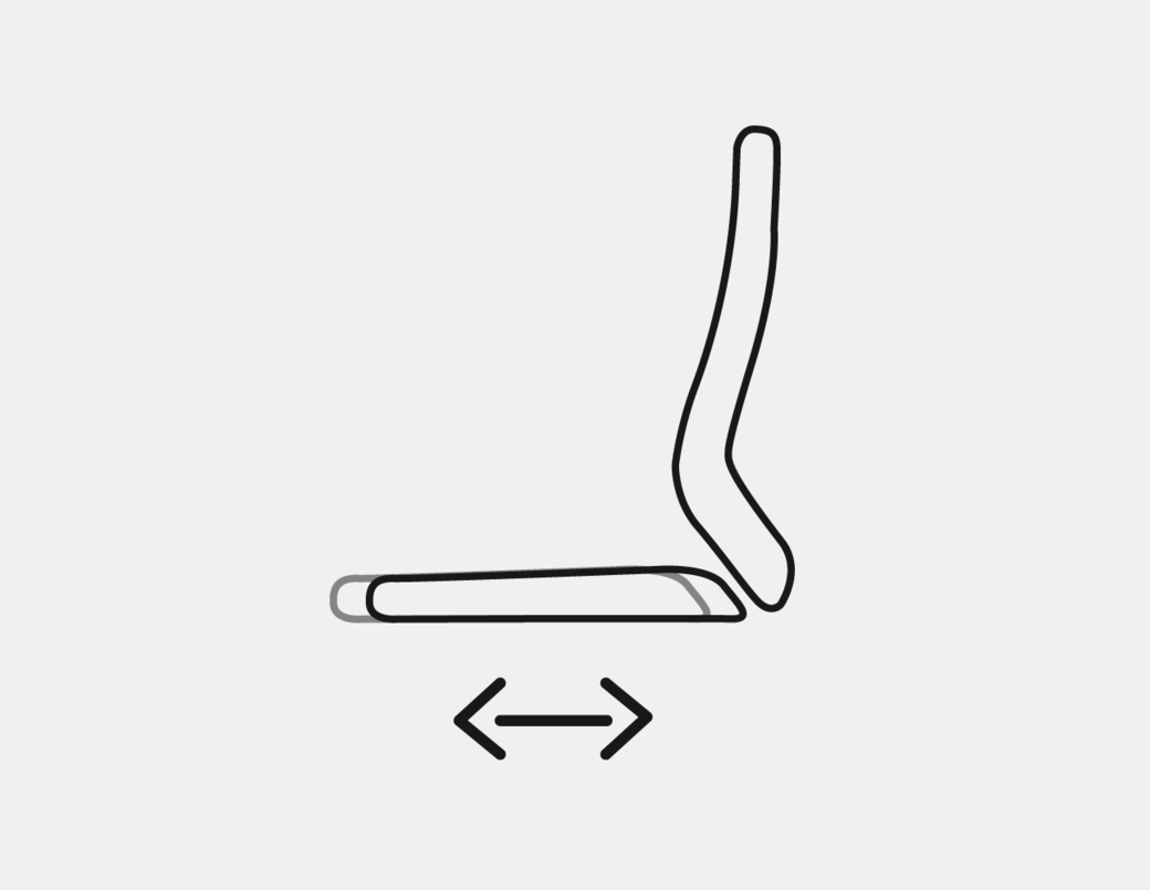 Mit Hilfe der optionalen Sitztiefenverlängerung kann die Sitzfläche um einige Zentimeter verlängert oder verkürzt werden.