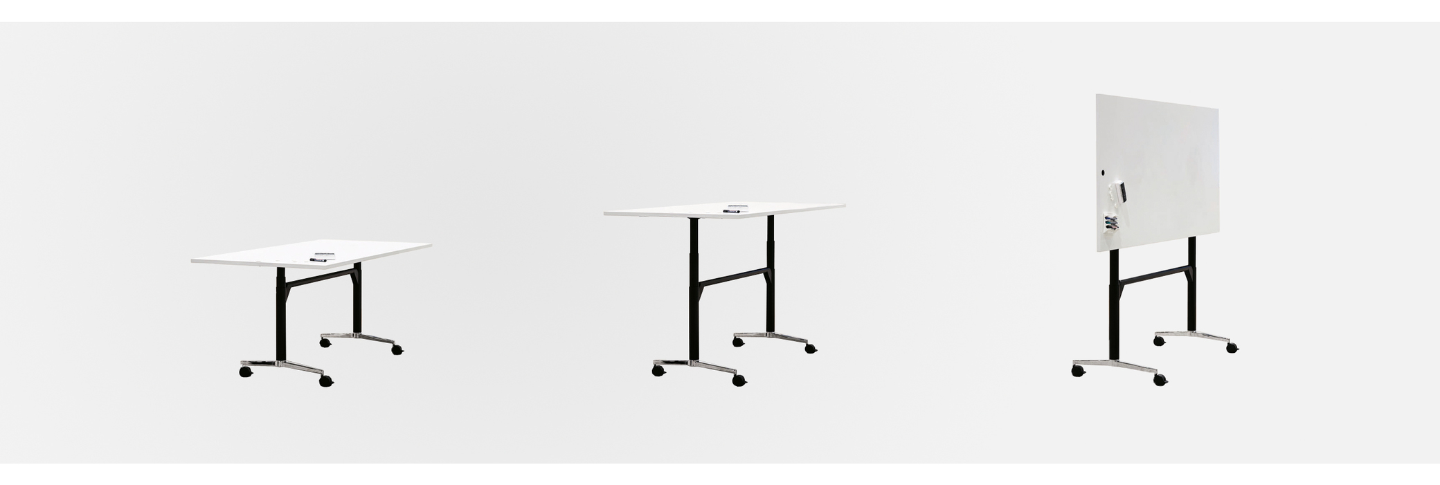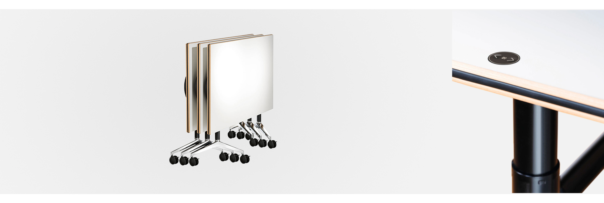 Der Timetable Lift ist ein mobiles Tischprogramm mit elektromotorischer Höhenverstellung zum Wechsel zwischen Settings im Sitzen und im Stehen. Einfach zu bedienen per Knopfdruck wird er zum Seminar-, Projekt-, Besprechungs- und Präsentationstisch mit Steh-Sitz-Dynamik. Die Tische sind kompakt aufzubewahren, bei Bedarf herbeizurollen und mit einem Griff kinderleicht in Betrieb zu nehmen. Der optionale Akku-Betrieb erlaubt Mobilität ganz unabhängig von Stromanschlüssen. Mehr noch: Ist der Timetable Lift mit beschriftbaren und auf Wunsch zusätzlich magnetisch haftfähigen Tischoberflächen ausgestattet, wird er mit einem Schwenk zur mobilen Projektions- und Weißwandtafel.
