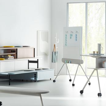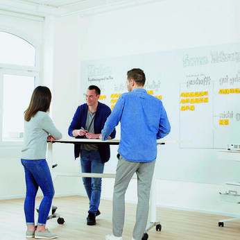 Das fördert Gesundheit, Agilität, Beteiligung und Effizienz gleichermaßen – zumal das Tischprogramm in der magnetisch haftfähigen und beschreibbaren Ausführung auch noch zum interaktiven White-Board werden kann.